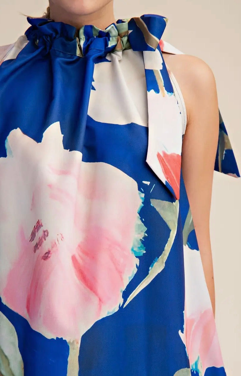 Floral Print Tie Neck Mini Dress