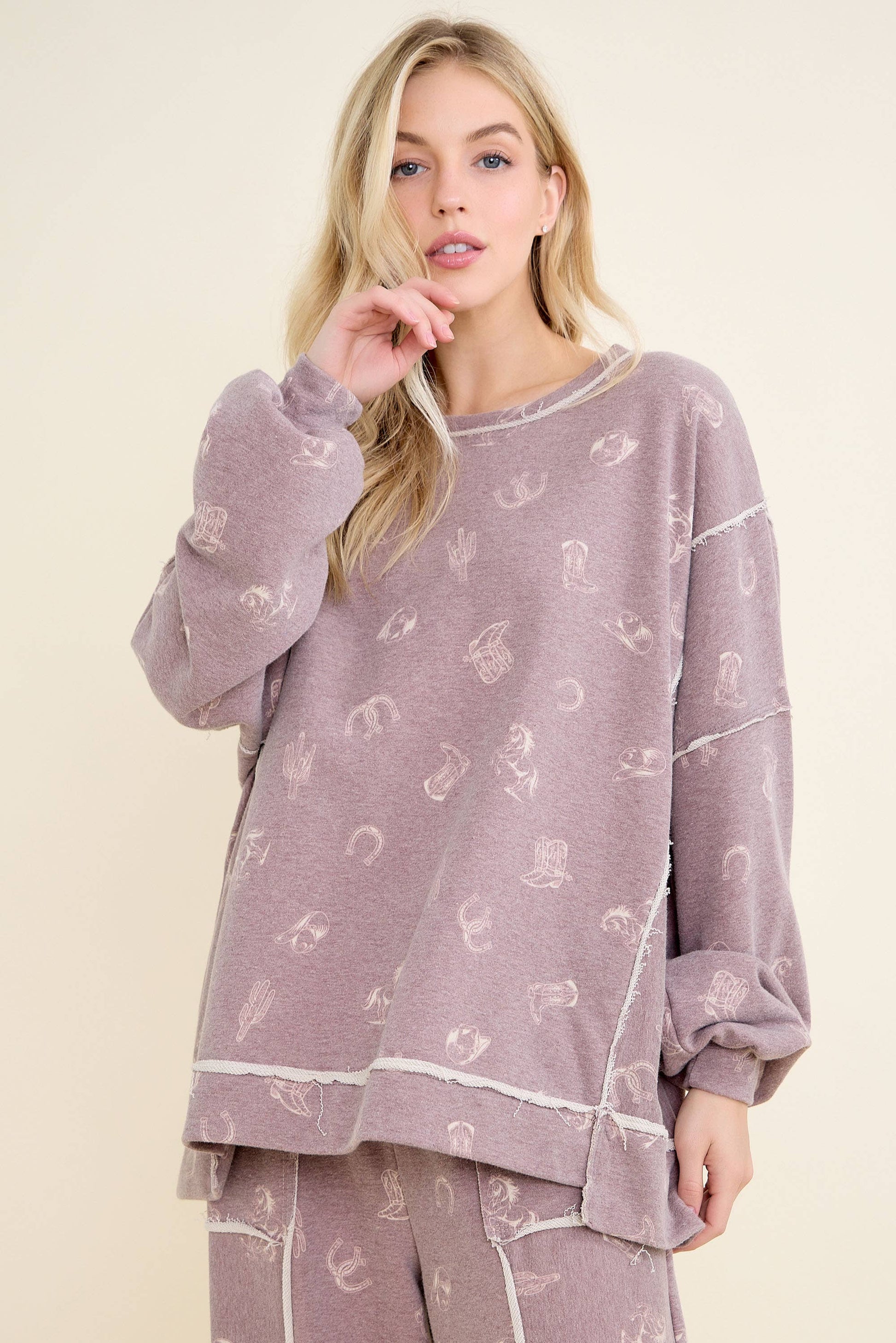 Washed allover Western graphic print Sweatshirt. Pair with Western Graphic Comfy Pants!